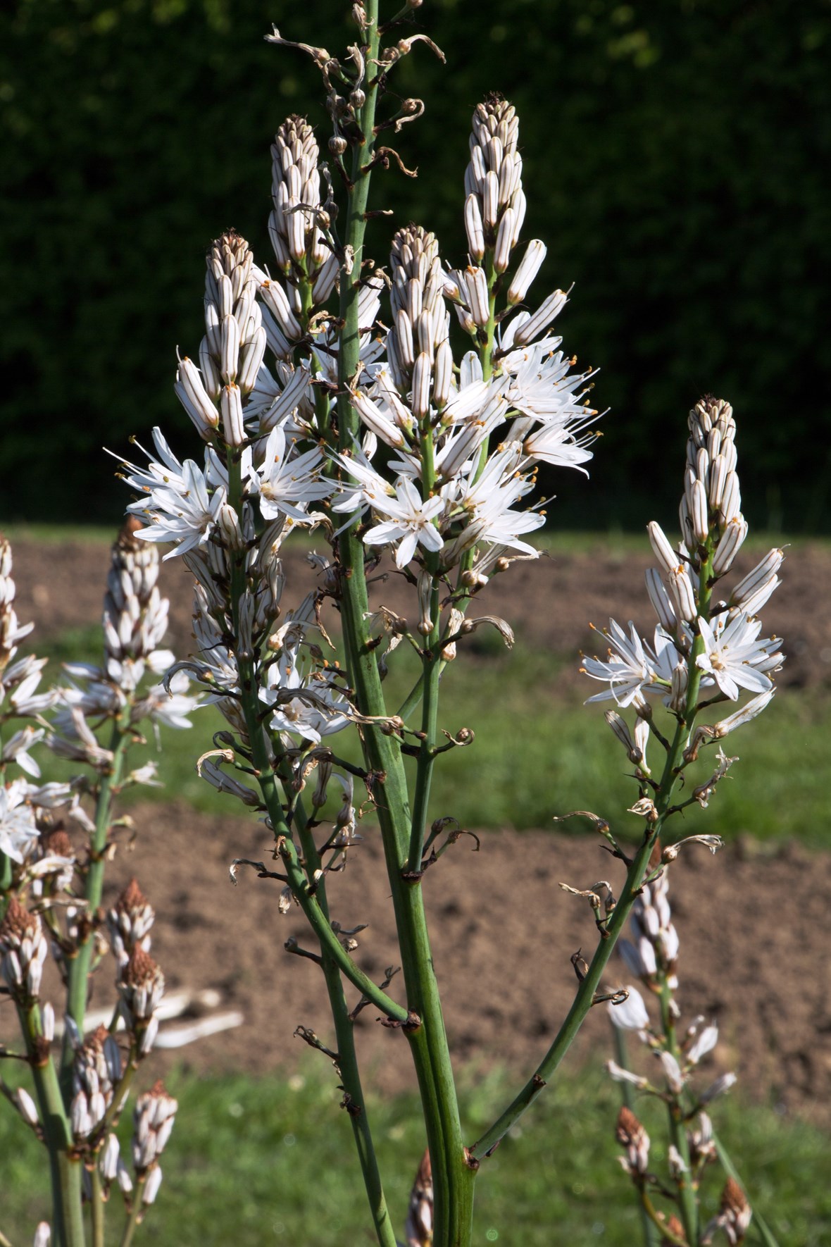 Asphelus albus is a plant for full sun and the root should be planted 5" (12cm) deep and no closer than 12" (30cm) apart in fairly well-drained soil. It is drought tolerant once well established.