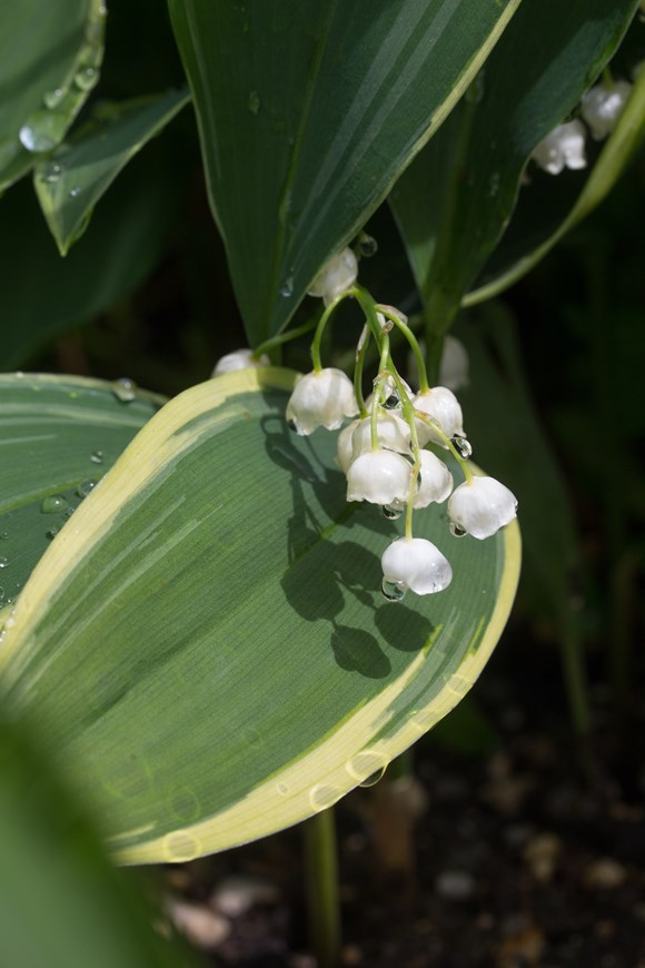 Convallaria majalis Hofheim exhibits a creamy yellow edge to the otherwise plain green leaf marks these out, these marginal highlights are considered rather stronger in this form than it is in C. Hardwick Hall, the flower is creamy white and scented.