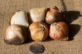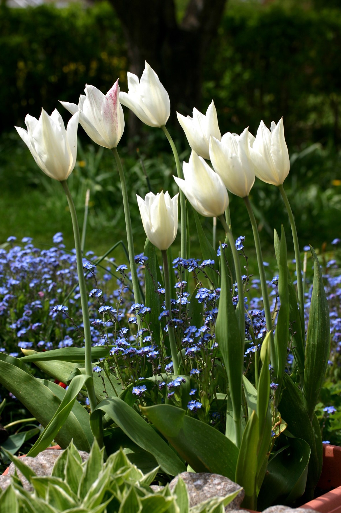 Tulipa White Triumphator bulbs should be planted 5" (12cm) deep and 5" (12cm) apart in a sunny free draining site , Don't be in a rush to get the tulips in the ground as they will benefit from planting in late October or early November, by which time the first frosts will have reduced the level of disease in the soil.