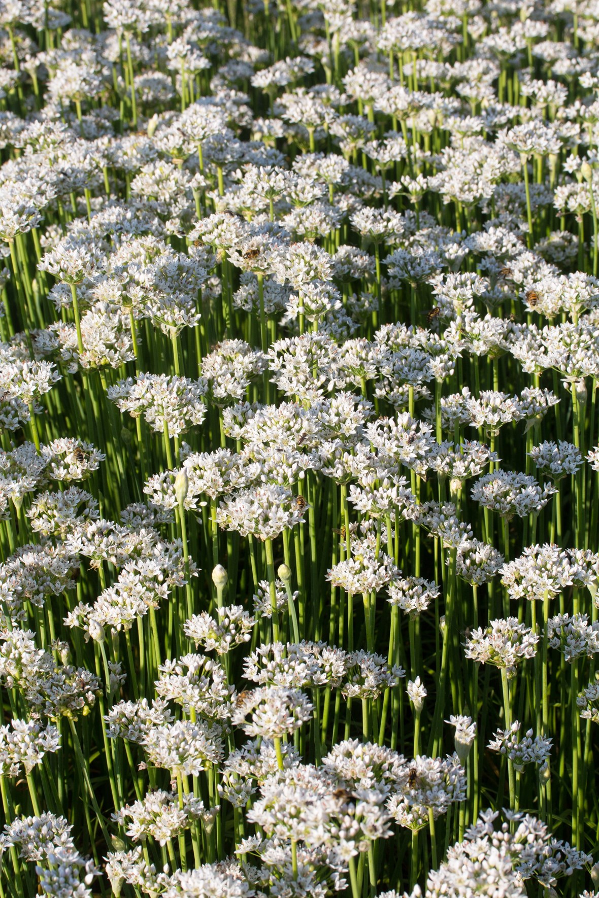 Wiry stems support white flowers marked with a pink midrib flowering in the second half of summer. In flower for ages and hugely attractive to lots of beneficial insects. Tough, wiry stemmed and increasing, all parts very garlic scented and also called Chinese chives.