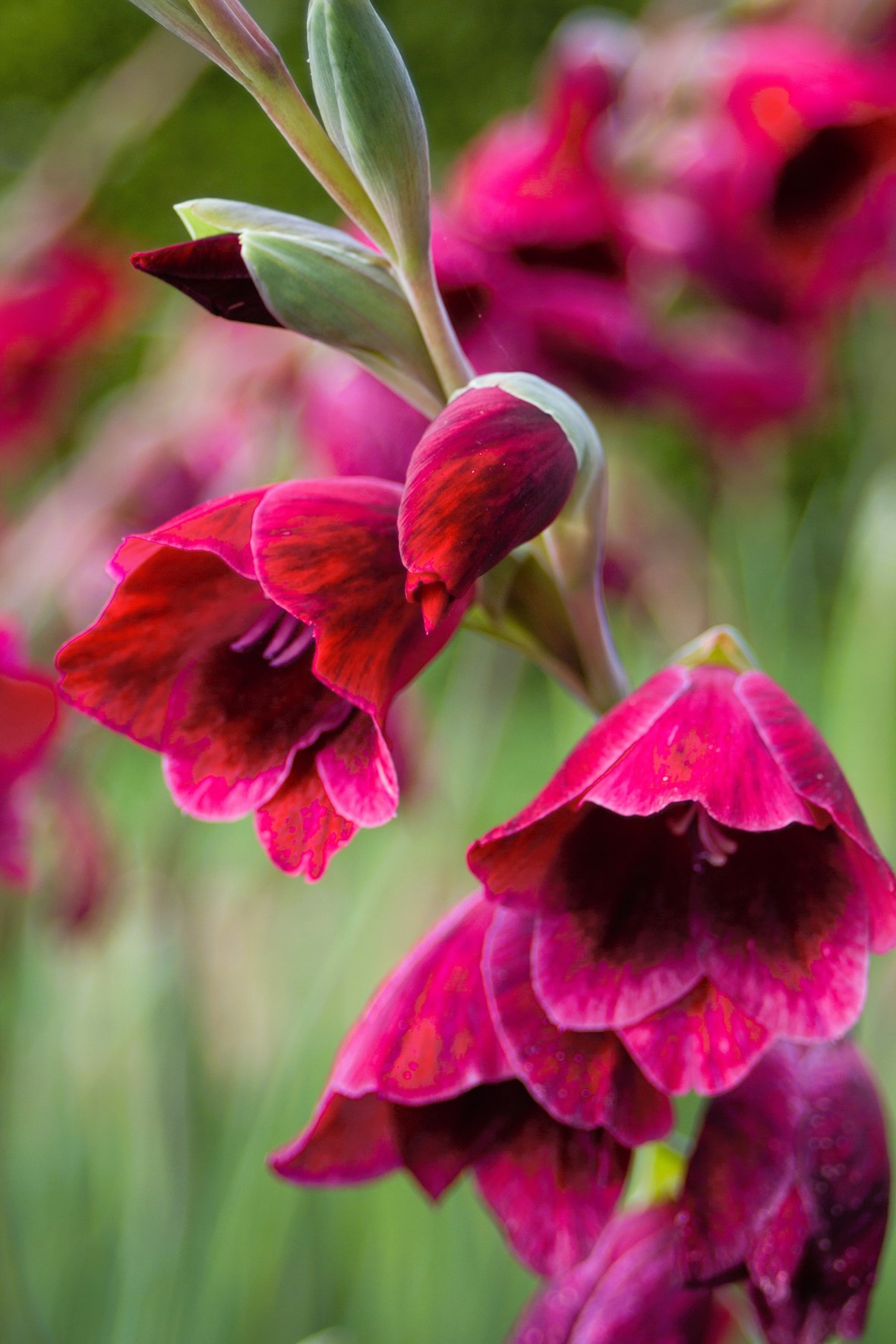 These were originally presumed to be a form of G. papilio when first sold at Hadspen House (now The Newt in Somerset) many years ago. Now they are thought to be more closely linked to G. ecklonii. Sturdy plants which are relatively vigorous and indeed seed around the nursery where their seedlings vary widely in shape and colour, suggesting that this is a plant of hybrid origin. Possibly less hardy than G. papilio, but more dramatic with hooded crimson flowers.
